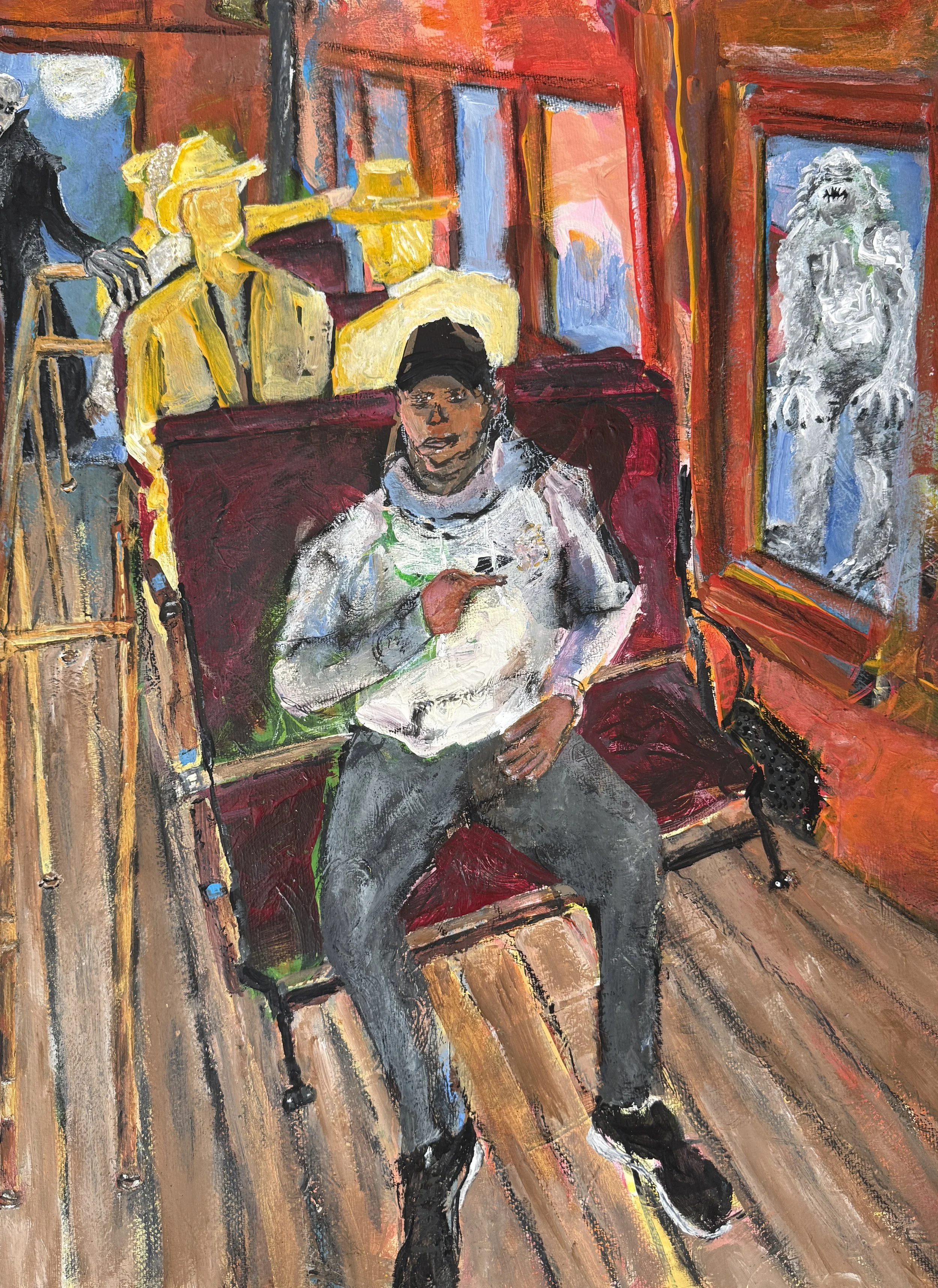 My pops is a fan of mythical creatures, particularly Nosferatu and Yeti. (Especially Nosferatu.) For his birthday, I painted a piece with these figures strategically placed around him in a scene from a train tour we attended. In my eyes, my pops is pretty mythical himself, in a fabulous hero sort of way.